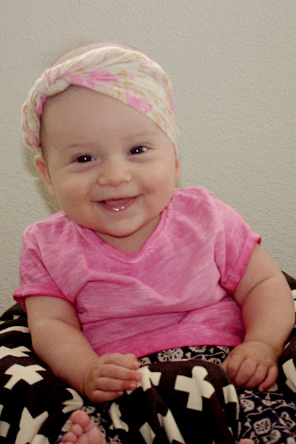 I finally got around to taking Cali's 4 month pictures today. I only had about 5 minutes of good mood time then it was back to eating and sleeping. So, I'm not thrilled with these but I figured if I waited too much longer she'd be 5 months and that would defeat the purpose...